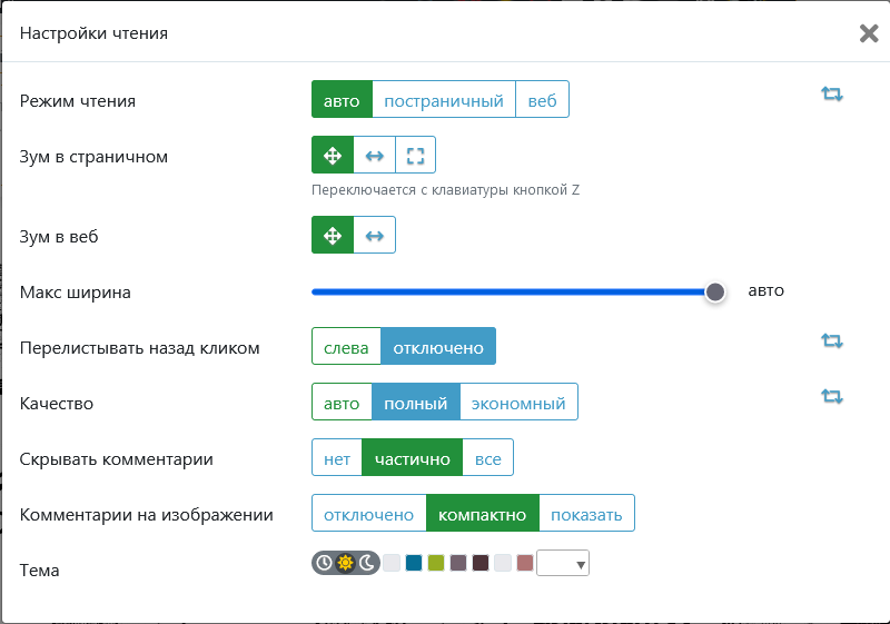 Значит это просто плохие сканы, щкатанай... Обновление страницы ничего и не должно сбрасывать, информация о ваших настройках хранится в кэше браузера... Режима для зума на сайте максимум 3 для постраничного чтения и 2 для читалки-вебки, куда бы и как вы не нажимали, но в режиме "по ширине окна" роль играет ещё и ползунок ширины... В окне настроек читалки отслеживание визуализировано, по кнопке - нет, но это и не имеет смысла в условиях 2(3) режимов... Как вернуть "стандартный режим" написано выше... Будет ли он универсальным для всех сканов?.. Нет, переводчики загружают на сайт сканы самого разного качества, от хайреза, до полного мусора... Если готовы мириться с низким качеством сканов, можете поставить режим "эконом" и смотреть на конвертируемые сайтом в jpg сканы, они будут +- одинаковыми...