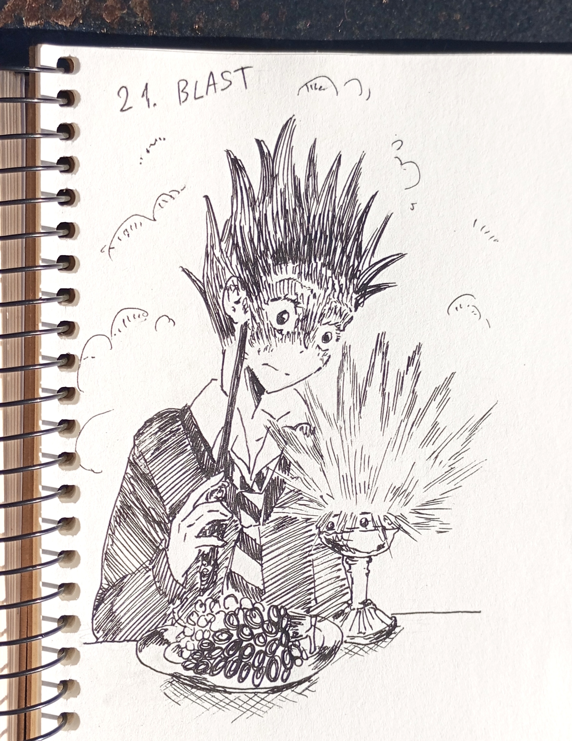 Мне хотелось нарисовать что-то в его значении про неуклюжую походку. Это типа и промах, ляп, но и есть значение про походку, в котором я сразу увидела Джека... Капитана Джека Воробья! И мне захотелось её нарисовать, но это было так сложно... Лучше было бы посмотреть побольше рефов, ага. Blunder от меня