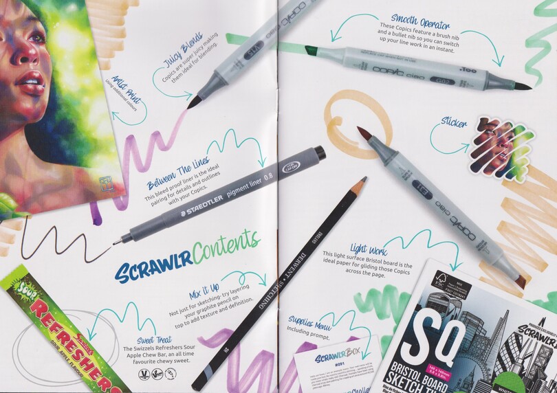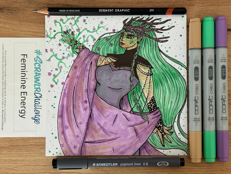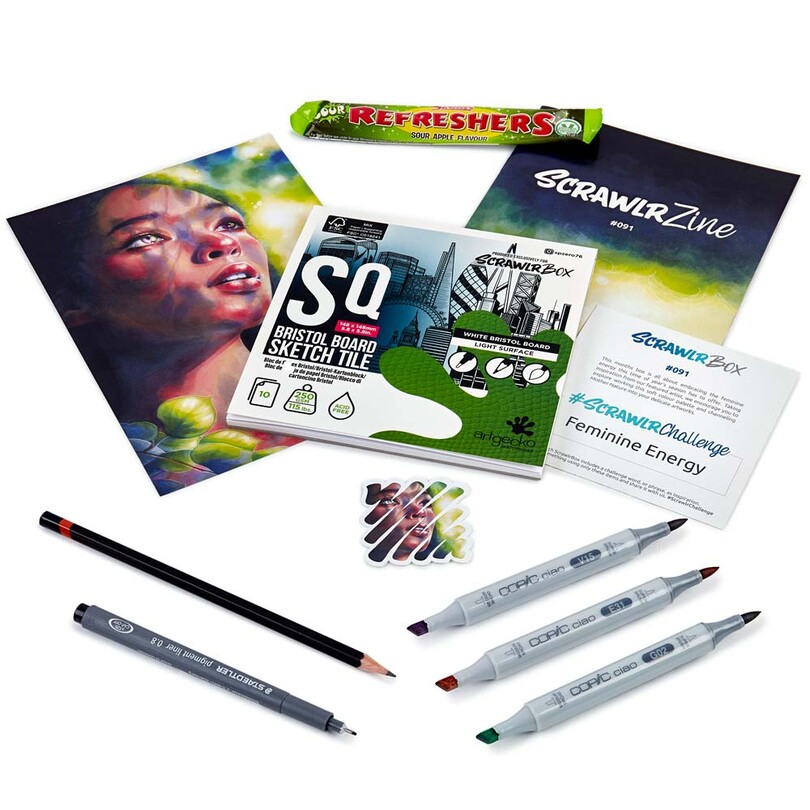 Продолжаю путешествие по арт коробкам от сервиса Scrawlrbox. Представляю коробку под номером 091 (дата выпуска март 2023), тема для арт челленджа "Feminine Energy".