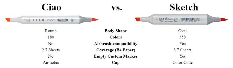 - Copic Ciao - бюджетный вариант Copic Sketch (цена в районе 5 евро, когда как Sketch в районе 7 евро). Небольшое сравнение из интернетов: