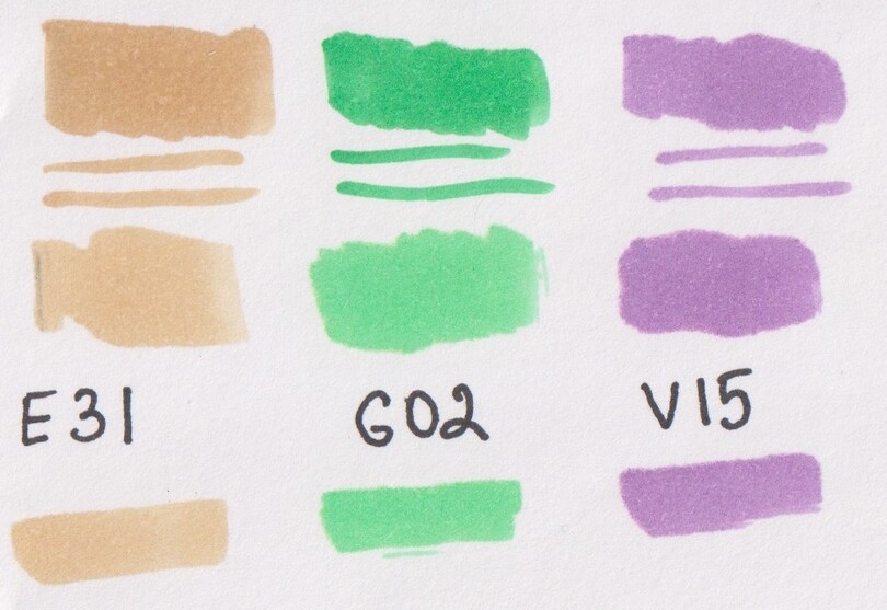 Что касается качества то тут все круто. Цвета если и яркие, то не вырвиглазные, a более мягкие/натуральные, смешиваются хорошо, заливка получается ровная (хотя тут может подставить ногу бумага -_-, вот про это будет "о бумаге"), наконечник-кисть просто любовь - для меня в меру мягкая и податливая, ей удобно раскрашивать как мелкие детали, так и крупные. Спиртовой запах есть, но он не сильный и можно сказать, что приятный.
