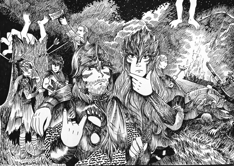 Берен и Финрод с отрядом на пути за сильмариллом разнесли орков и взяли их шмотки для конспирации.