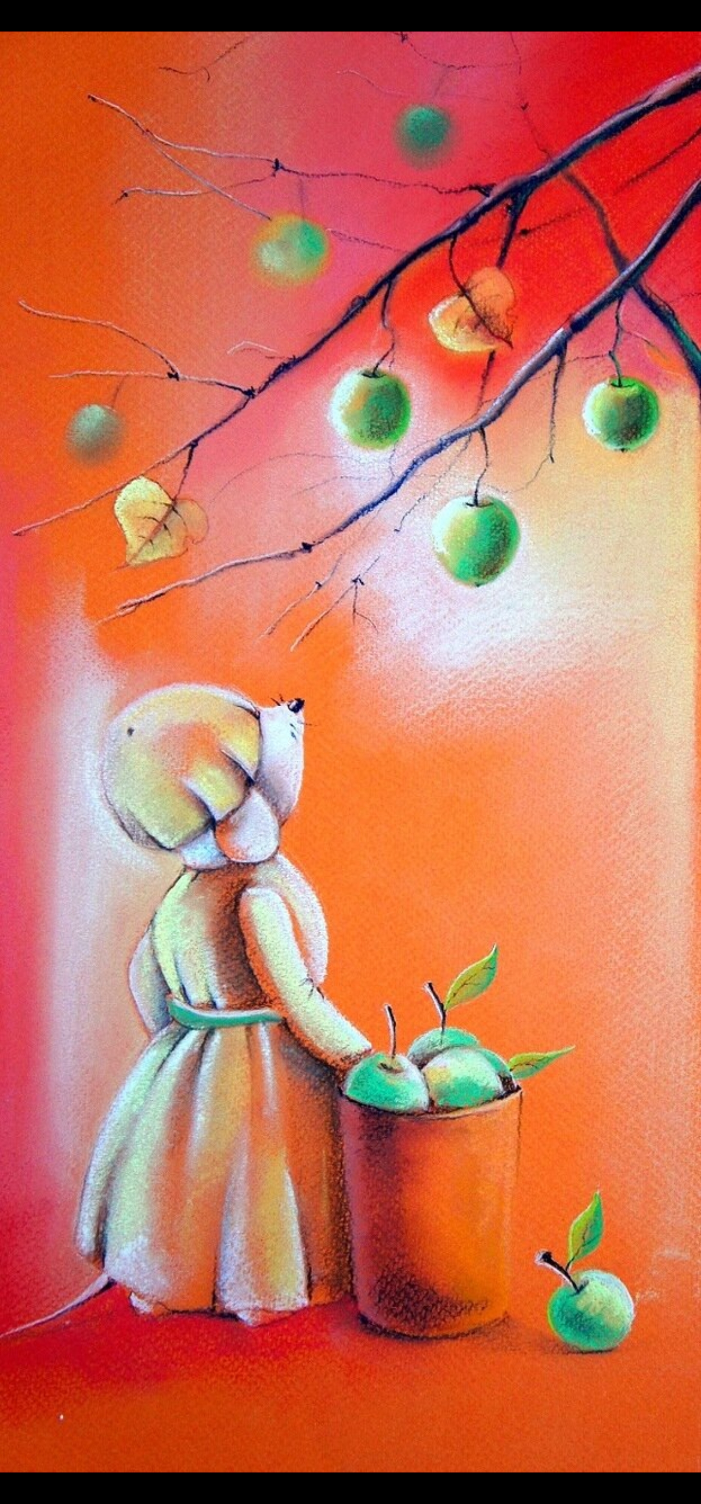 А эта карточка на оранжевой бумаге, масленной пастелью.