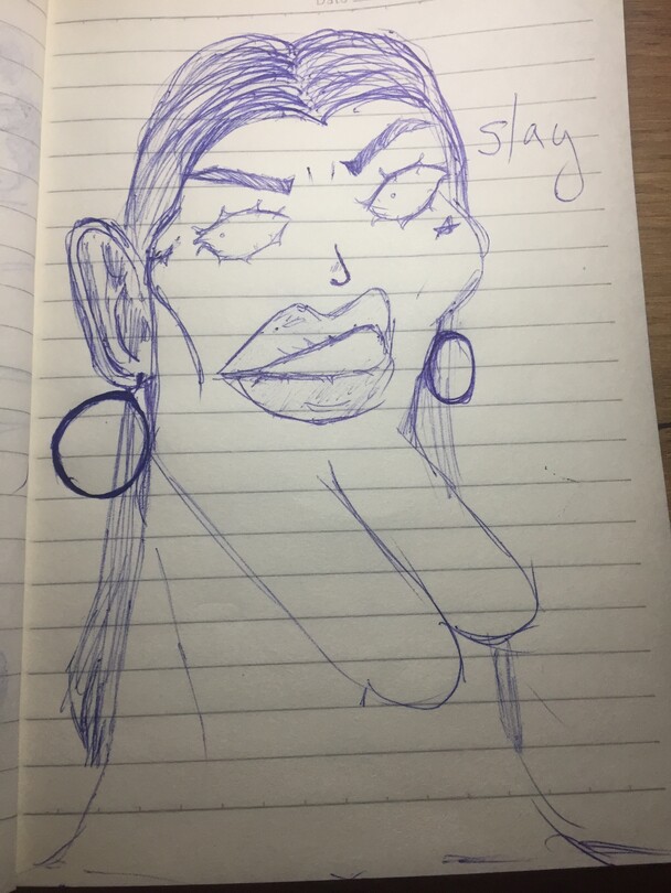 Этот рисунок я нарисовала недавно ручкой. Я не знаю что с ухом. Вообще не знаю что то в общем..