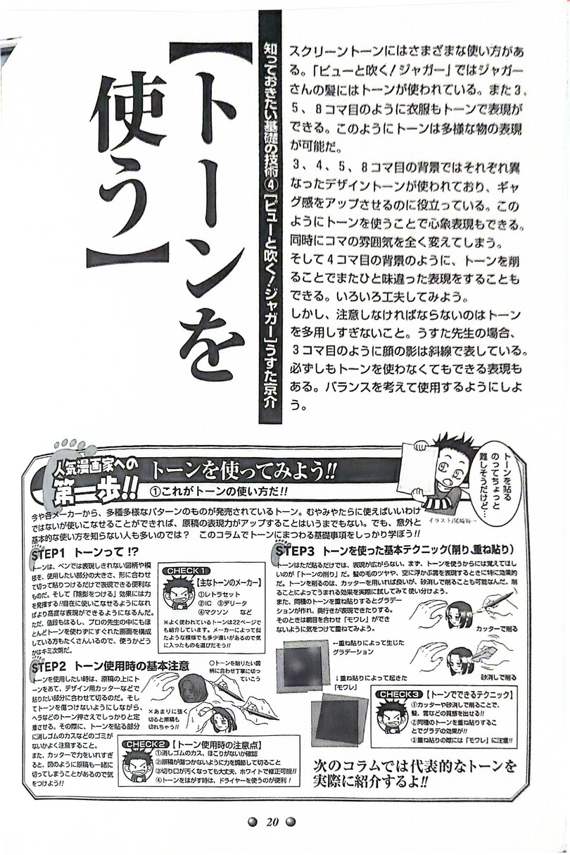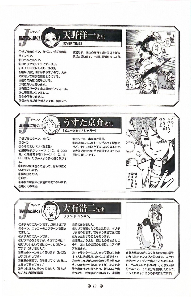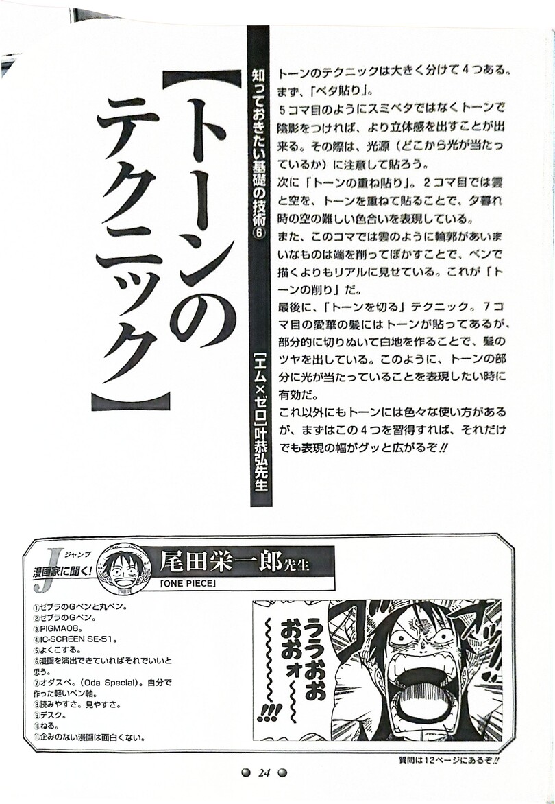 Итак я так поняла что в данном журнале разбираются основные техники манга и создания их по этапам. Еще из спешла можно узнать чем работают наши гуру манга. Так что дерзайте) Если нужно будет в следующих постах выложу переводы. А пока как то так))