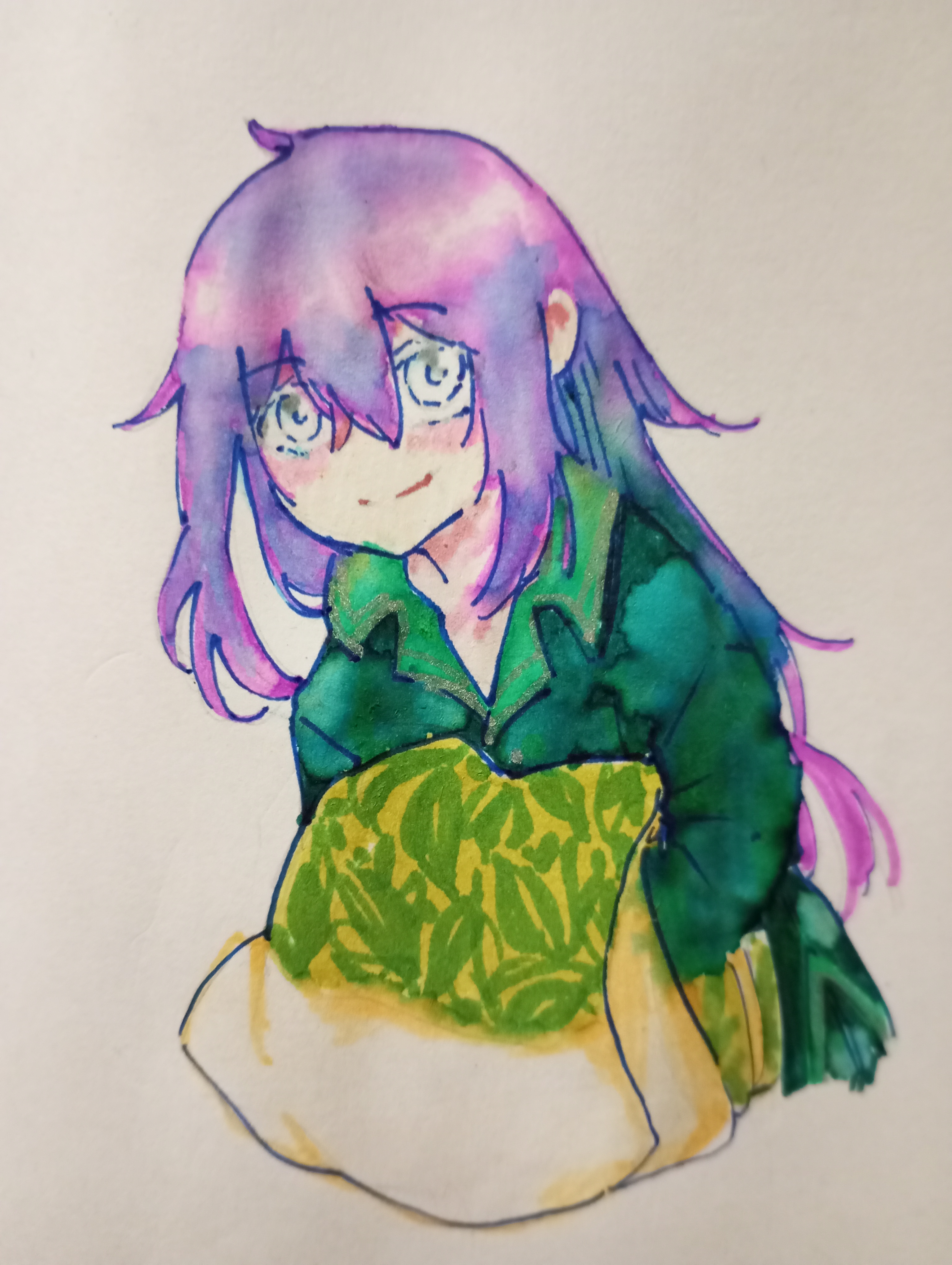 Мне прям нравятся эти переходы, обычной акварелью у меня бы так не получилось. А зелёныыыый... Это вообще благодать! Я получила истинное наслаждение (*-*)