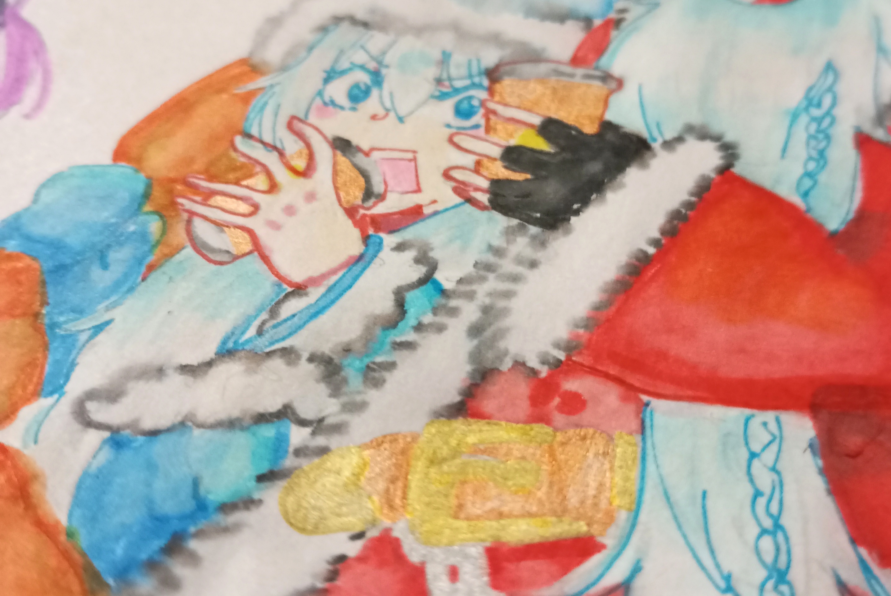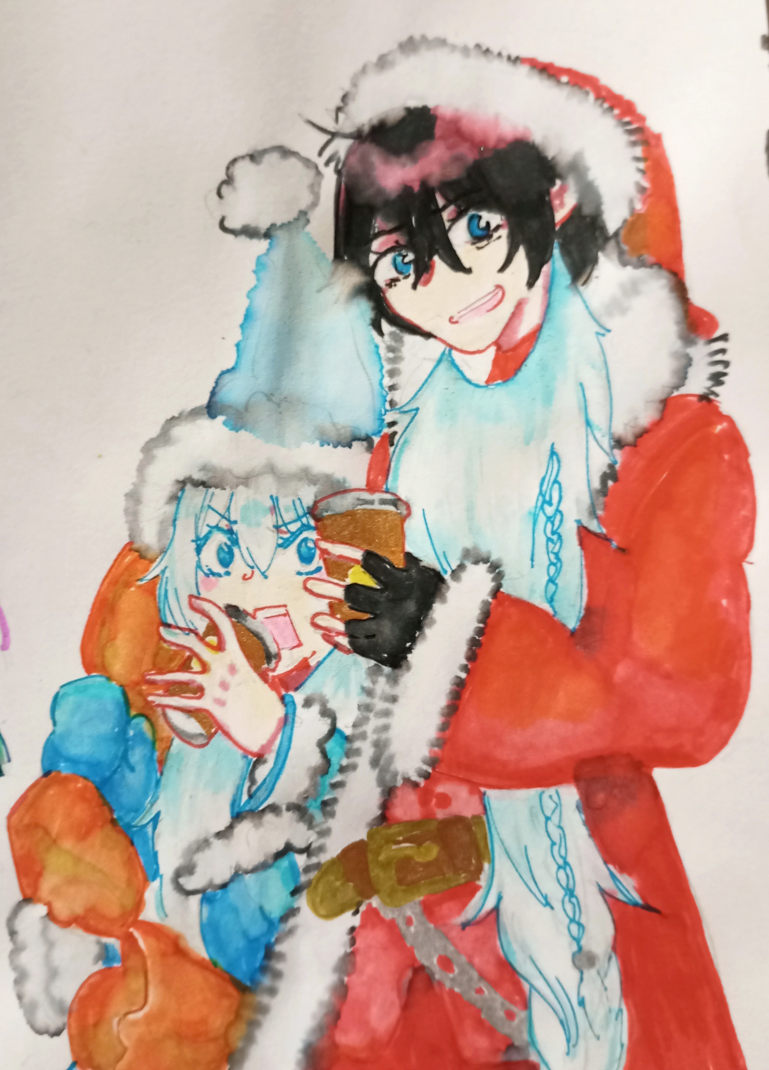 Короче, эти маркеры прям прикольные при взаимодействии с водой, и с ними возможны разные акварельные эффекты. С моими детскими аквамаркерами такого не получалось, они были более стойкие. Хотя благодаря ним мне теперь было намного легче управляться с этими: типа сначала детская школа :D