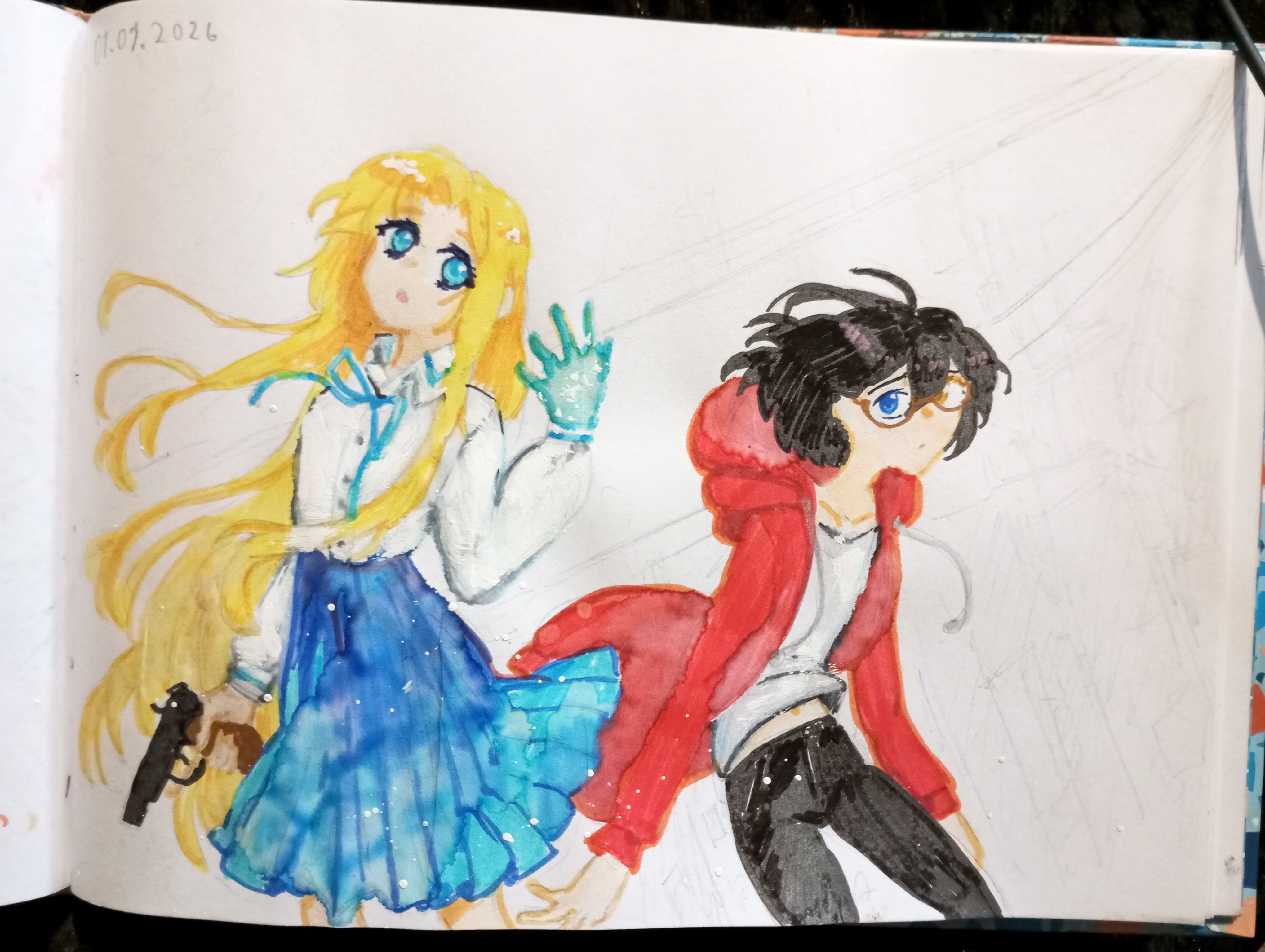 И закончила я этот год акварельными маркерами, и начала следующий ими же~