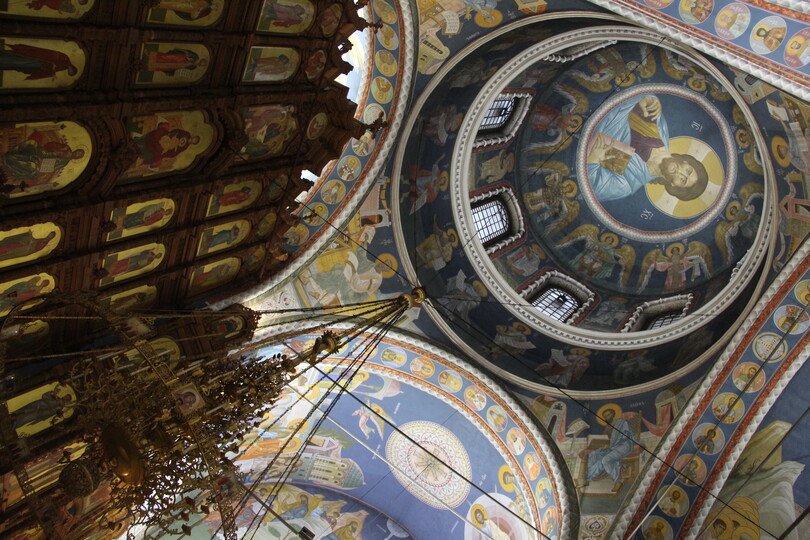 Кстати, открытием может стать иконографическая роспись на стенах храма. Как меняются размеры изображений, ближе к куполу или барабану, чтобы для зрителей внизу всё смотрелось примерно одинаково.