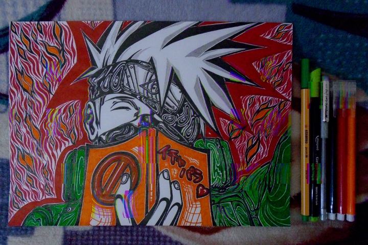 Немалую толику времени ушло на рисование Какаши-сана непосредственно на работе в свободные минутки